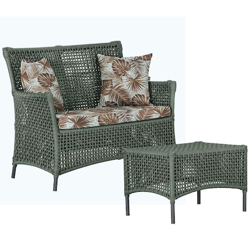 1 Sofá Área e Mesa Igapó Alumínio Pintura Preta Corda Náutica Estofado Impermeável Almofada 6 Trama - Verde