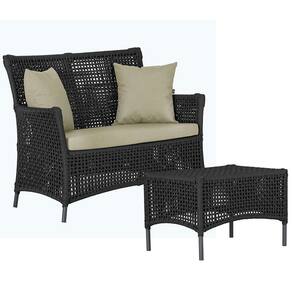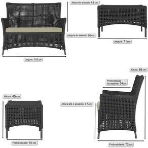1 Sofá Área e Mesa Igapó Alumínio Pintura Preta Corda Náutica Estofado Impermeável Almofada 7 Trama - Preto
