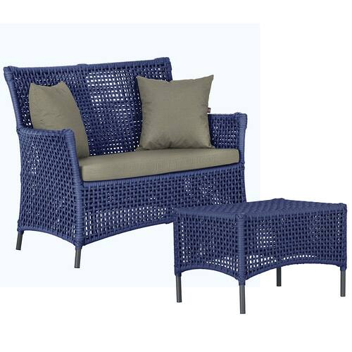 1 Sofá Área e Mesa Igapó Alumínio Pintura Preta Corda Náutica Estofado Impermeável Almofada 8 Trama - Azul