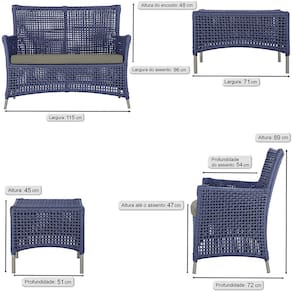 1 Sofá Área e Mesa Igapó Alumínio - Azul
