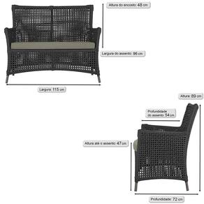 1 Sofá Área Externa Igapó Alumínio Pintura Marrom Corda Náutica Estofado Impermeável 8 - Preto