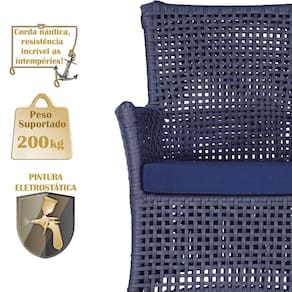 1 Sofá área Externa Igapó Alumínio Preta Corda Náutica E10 Azul