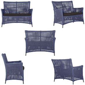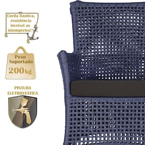 1 Sofá área Externa Igapó Alumínio Preta Corda Náutica E9 Azul