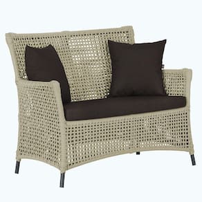 A corda nautica adiciona um toque de rusticidade moderna, enquanto o estofado impermeavel garante que sua Sofa esteja sempre impecavel, mesmo apos uma chuva inesperada ou um acidente com liquidos.