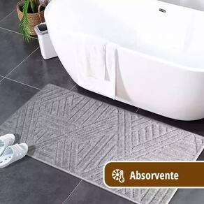 Vantagens - base antiderrapante; - soft: macio ao toque; - absorvente; - fibras resistentes; - não solta pelos; - antimofo; - alta durabilidade e com ótimo acabamento; - pesado, evita tropeços; - maior retenção da sujeira e umidade; - fácil de limpar; - combina com vários ambientes; - elegante e discreto.