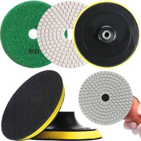 Modo de uso: aceita lixamento tanto, a úmido, quanto, a seco. No úmido utiliza-se com uma politriz úmido de qualquer marca que aceite um prato com rosca M14 ou máquina polidora utilizada em indústrias de mármore e granito para polimento nas bordas da pedra. Quando o uso é a seco, aceita lixadeiras, esmerilhadeiras e politrizes. Em ambos os casos, basta encostar o costado de tecido adesivo ao disco prato suporte com que também tenha vellcro, e então fazer o devido uso.