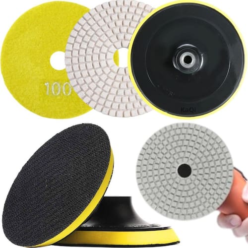 Transforme o acabamento das suas superfícies com a Lixa Diamantada 4 Polegadas 100mm da KaQi + o Disco Suporte Prato 4 Polegadas 100mm Desenvolvida para oferecer o melhor polimento e acabamento, é perfeito para quem busca resultados profissionais, tanto em pedras como granitos, mármores, cerâmicas, quanto ardósia, calcário, dekton, quartzo, porcelanato, pedra projetada, concreto, nanoglass, super nano, vidro e muito mais. Seu lixamento pode ser a seco e a úmido, o que proporciona um processo mais rápido, sem gerar calor excessivo. Assim, é possível garantir um resultado sem manchas ou falhas, e ainda favorece um efeito brilho d'água incrível