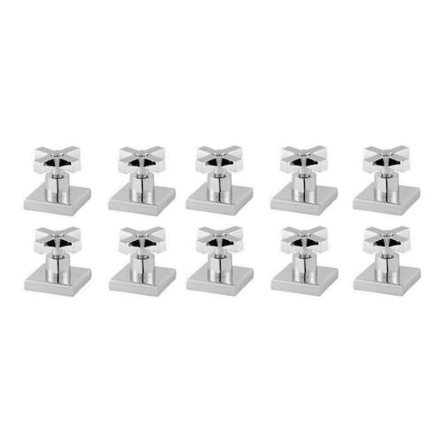 10 Acabamentos P/ Registro Cruzeta Quadrado 3/4 Padrão Estria DecaSERVE EM BASES: 1/2, 3/4 E 1 POLEGADARegistros de Pressão e GavetaGARANTIA: 2 anosMarcas de registros compatíveis com este acabamento:Serve em:DECA, Stoc, Furkin, Admo, Oriente Atual, Forusi, Bognar, Bometal, TR, Stoc Metais, entre outros que seguem o mesmo padrão.(NÃO SERVE BASE DOCOL, FABRIMAR, LORENZETTI)Especificações Técnicas:Fixação - ParedeUso - GeralAcabamento - CromadoAcionamento - Convencional ou 1/4 de VoltaO Kit acompanha:10 Hastes (cruzeta) com 3,5cm. x 3,8cm. FABRICADA EM METAL (LATÃO CROMADO)10 Bases com 5cm. x 5cm. FABRICADA DE ABS CROMADO10 peças de acabamento.