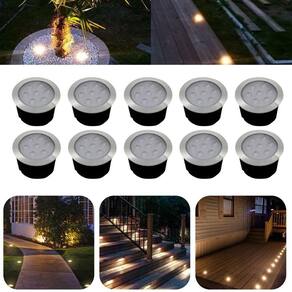 10 Luminárias Balizadores Spot Led SMD Em PVC De 7W Luz Branco Quente De Embutir Em Piso Chão Solo Gramado Jardim Escada