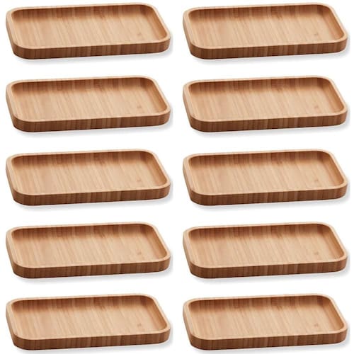 10 Bandejas Bambu Lyor Retangular Petisqueiras Multiuso Hire 20x10cm para Restaurante
