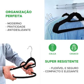 Esse kit de cabides é ideal para quem deseja organizar o seu guarda-roupa de forma prática sem abrir mão da qualidade e requinte, devido ao seu formato é indicado para pendurar todos os tipos de roupas; desenvolvidos com cavas, detalhe que facilita pendurar também peças com alças finas.Antideslizante e feito de plástico ABS revestido de veludo e gancho de metal giratório, leve, porém muito resistente.Sofisticado, leve, e, ao mesmo tempo, resistente