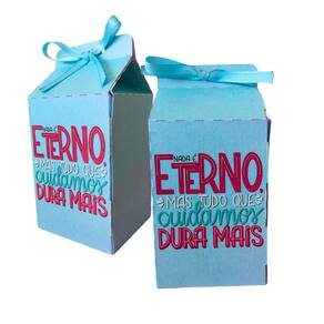 Caixinha formato Milk com fechamento de encaixe, não necessita de cola Para a montagem.