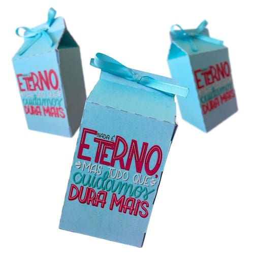 Caixinha formato Milk com fechamento de encaixe, não necessita de cola Para a montagem.