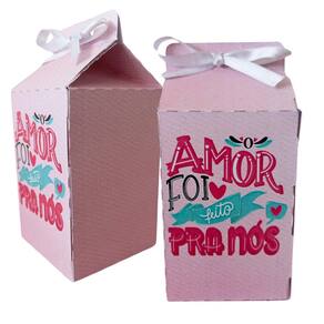 Caixinha formato Milk com fechamento de encaixe, não necessita de cola Para a montagem.