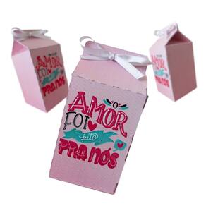 Caixinha formato Milk com fechamento de encaixe, não necessita de cola Para a montagem.