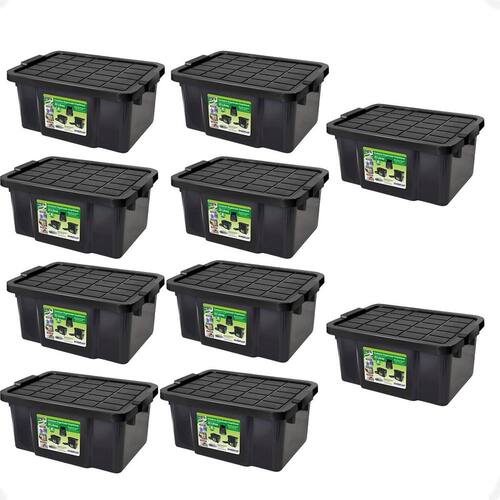 10 Caixa Organizadora Multiuso Preta 15L Empilhável Tampa