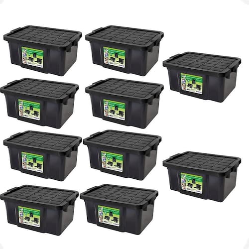 10 caixa organizadora multiuso preta 15l empilhável com tampa Container organizador empilhavel 15 lts - primeira moagem