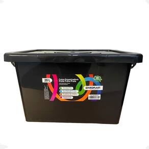 Caixa organizadora preta 20l empilhável trava e rodizio