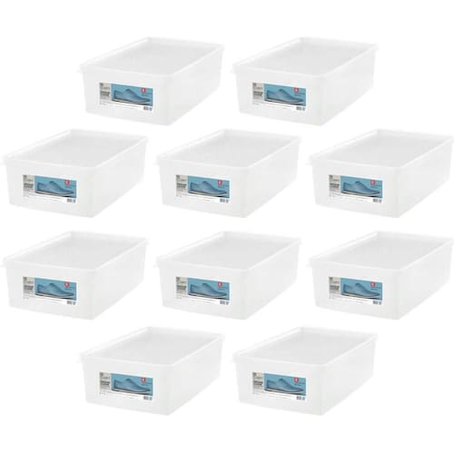 Conteúdo: 10 caixas plásticas para calçados;