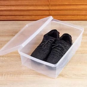 Com estas caixas organizadoras multiuso da Ordene são ideais para armazenar calçados, materiais de escritório, brinquedos e muito mais. Cada caixa possui dimensões amplas, comportando sapatos de tamanhos variados, do número 38 ao 46. As tampas destas caixas plástica possuem um sistema de ventilação, além de proteger os objetos contra poeira, sujeira e possíveis danos externos, deixando-os íntegros por mais tempo. Você também pode etiquetar ou marcar as caixas para facilitar a organização e identificação rápida dos seus sapatos ou outros itens armazenados.