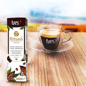 Ideal para quem aprecia cafés com perfis sensoriais diferenciados, o Rituais Chocolate combina elegância e cremosidade, oferecendo uma bebida marcante e inesquecível. Compatível com as máquinas TRES, é a união perfeita entre praticidade e sofisticação.