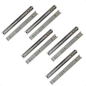 Corrediças Telescópicas 25cm Gaveta Trilho Zincada 5 Pares Rayco A Corrediça telescópica é indicada para gavetas de cozinhas, closets, quartos, banheiros, lavanderias, prateleiras retráteis/extensíveis, bases de teclado e mobiliário em geral - Marca: Rayco; - Kit com 5 pares de corrediças; - Comprimento: 250mm 10 Polegadas ; - Largura: 30mm; - Espessura: 10mm; - Para uso geral; - Possibilita a abertura total da gaveta com deslizamento suave, preciso e resistente; - Corpo em aço galvanizado; - Deslizamento através de de aço; - Tipo: telescópica; - O par suporta até 20kg; - Peso: 0,29Kg; - : 90 dias. Marca: Não Informado
