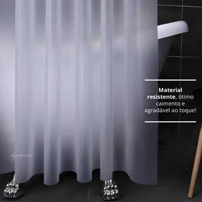 Por ter uma transparência fosca ela bloqueia a visão, porém permite a entrada de luz mantendo o ambiente claro. Seu material é flexível e macio, agradável ao toque e com caimento perfeito. Além disso, evita que água se espalhe por todo o ambiente durante o banho.