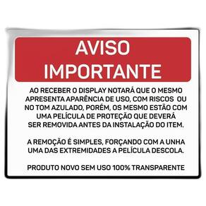 Tamanho do display: 16 Cm de altura X 11 Cm de largura Cor: Transparente Espessura: 2 mm Qualidade: Virgem