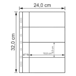 10 folhas cédulas acetato 4 divisões 32x24cm com bolso A abertura dos bolsos é pela parte superior, no verso parte de trás da folha. Dimensões: - comprimento: 32cm - largura: 24cm - quantidade de bolsos: 4