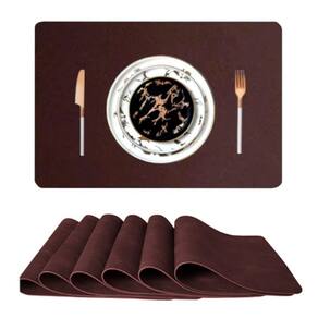 10 jogos americanos mesa jantar impermeável + porta copos Cor: marrom café Tamano: 43x30 Jogo americano couro retangular + porta copos