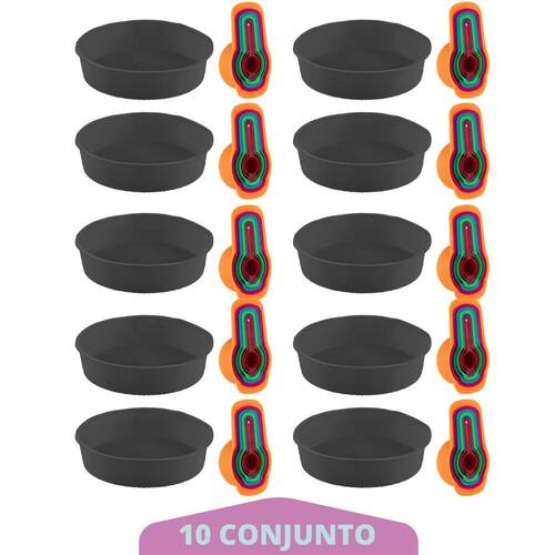 10 kit Medidora 6 Pçs + Forma de Silicone 24cm Redonda Preto