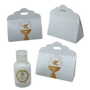 Caixinhas personalizadas, cuidadosamente desenhadas para refletir a importância deste evento religioso. Frascos de hidratante de alta qualidade, proporcionando uma experiência sensorial agradável que perdura muito além do evento.