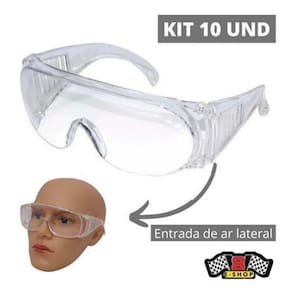 10 óculos de proteção epi segurança sobrepor outro óculos Comprando neste anúncio você irá receber 10 unidades do óculos de sobrepor incolor.