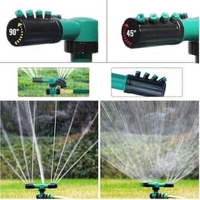 Com a rotação de 360 graus e os jatos de quatros bicos, o irrigador de gramado aproveita bem toda a água para molhar por completo o jardim, campos ou gramados evitando desperdícios.