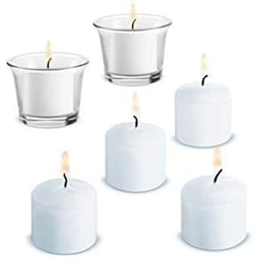 Características: - dimensões de cada copo com vela: altura 5,0cm x diâmetro topo 6,0cm, diâmetro base 4,5cm - parafina branca - aroma: sem aroma - material: vidro decorado e parafina -tempo de queima aproximado: de 6 a 7 horas cada vela - validade : indeterminada