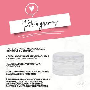 O pote transparente permite visualizar facilmente o conteúdo sem precisar abrir a embalagem. Isso facilita a identificação rápida do produto e contribui para a organização eficiente.