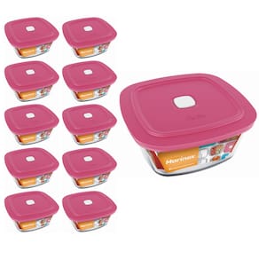 Pote De Vidro Quadrado Com Tampa Marinex 500ml 10 unidades