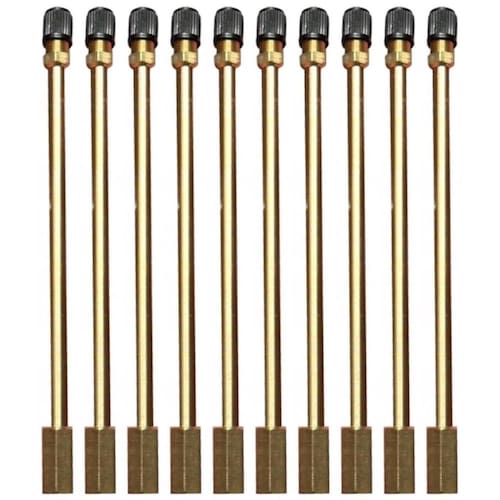 Feito em metal; Utilizado para facilitar o enchimento e calibragem de pneus; Alcance estendido. Kit composto: 10 Unidades