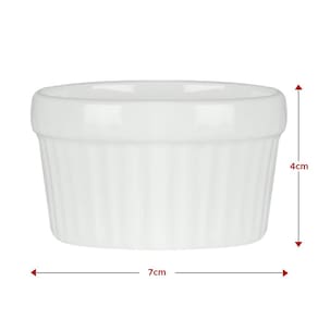 10 Ramekin de Porcelana Classic Branco 6cm x 4cm Lyor Sirva seus molhos e suas sobremesas com muito mais estilo com o Ramequim de Porcelana Esse lindo ramequim é feito todo em porcelana branca, com o tradicional relevo de listras verticais dessas peças. Com esse lindo Ramequim de Porcelana Branca as suas refeições ficam ainda mais chiques e apetitosas