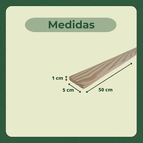 Medidas aproximadas de cada ripa/sarrafo: 1 x 5 X 50 cm (A x L x C)