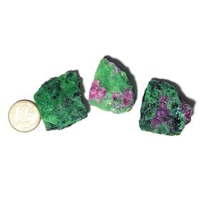 Encante-se com o Rubi Bruto na Zoisita – Classe B, uma combinação rara de beleza e energia, unindo a força do rubi com a harmonia da zoisita. Uma verdadeira joia da natureza, ideal para quem busca mais do que uma simples peça decorativa: essa pedra preciosa oferece uma experiência energética única. Perfeita para meditação, proteção espiritual, estímulo à vitalidade e conexão com a prosperidade, essa pedra é muito valorizada no mundo esotérico. Sua coloração vibrante mistura tons de verde (zoisita) com manchas e cristais vermelhos intensos (rubi), criando um contraste visual poderoso e encantador. Transforme seu espaço e eleve suas vibrações com essa pedra autêntica, direto da natureza. Aproveite essa oportunidade para adquirir um mineral genuíno, com procedência garantida, e sinta a diferença que só uma pedra natural pode proporcionar. Características principais:\nNome: Rubi Bruto na Zoisita (Natural)\nCor: Verde com inclusões e cristais de rubi vermelho\nPeso: 10 a 25g, Média de 15g\nTamanho: 2 a 4cm (varia de acordo com o formato)\nOrigem: Cristais de Curvelo, MG\nAutenticidade: 100% natural, sem tratamentos artificiais\nPor que escolher o Rubi na Zoisita Natural? Ao contrário de peças artificiais ou tratadas, o Rubi na Zoisita natural carrega a força de milhões de anos de formação geológica. Cada pedra é única, com suas tonalidades vibrantes e padrões inimitáveis. Essa combinação natural promove equilíbrio entre energia, força e crescimento espiritual. Seja como amuleto de proteção, objeto de meditação, decoração ou para uso em práticas energéticas, estará investindo em um mineral de grande valor esotérico e estético, muito procurado por terapeutas holísticos, colecionadores e amantes de cristais em todo o mundo. Propriedades energéticas atribuídas:\nRubi: Estimula a vitalidade, coragem, amor próprio e paixão pela vida.\nZoisita: Promove equilíbrio, crescimento espiritual, regeneração emocional e conexão com a natureza.\nA junção dos dois minerais proporciona proteção energética, alinhamento de chakras e fortalecimento da aura.\nObservação: Por se tratar de uma pedra natural, cada peça possui formatos, tonalidades e padrões únicos, podendo apresentar áreas mais lisas, irregulares ou texturizadas. Não perca a chance de ter essa pedra poderosa em suas mãos! Adicione ao seu carrinho agora e sinta a energia transformadora que só o Rubi na Zoisita natural pode oferecer.