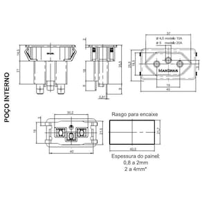 Padrão Weg Corrente: 10A Poço Interno Conexão: Bornes com parafusos Modelo 20A com adaptador para 10A Ean: 1000000182866