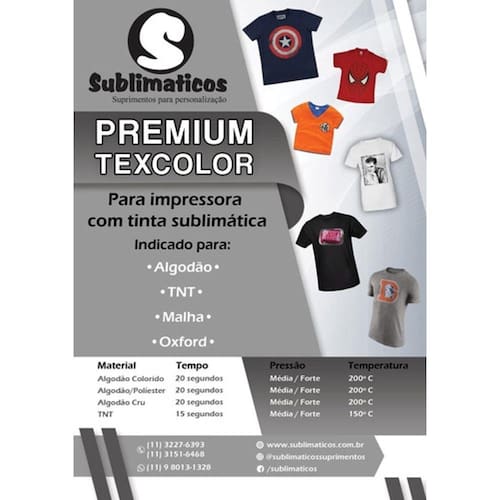 10 Transfers Tex Color para Sublimação em Algodão Colorido - Tamanho 20 x 30