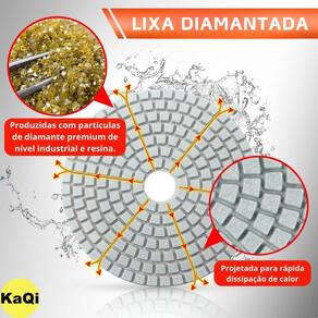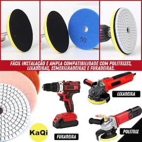 Transforme o acabamento das suas superfícies com o Kit Lixas Diamantada 4 Polegadas 100mm da KaQi Desenvolvido para oferecer o melhor polimento e acabamento, é perfeito para quem busca resultados profissionais, tanto em pedras como granitos, mármores, cerâmicas, quanto ardósia, calcário, dekton, quartzo, porcelanato, pedra projetada, concreto, nanoglass, super nano, vidro e muito mais. Seu lixamento pode ser a seco e a úmido, o que proporciona um processo mais rápido, sem gerar calor excessivo. Assim, é possível garantir um resultado sem manchas ou falhas, e ainda favorece um efeito brilho d'água incrível