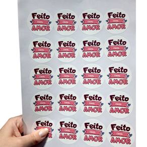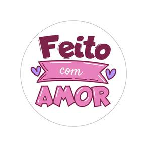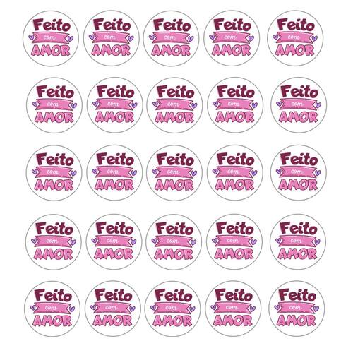 100 Adesivos Vinil Para Embalaguem Frase Feito c/ Amor 4,5cm