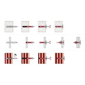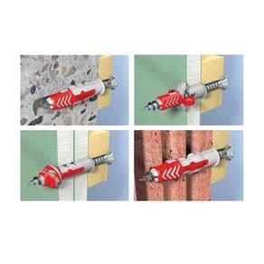 A DuoPower da fischer oferece bons valores de fixação graças aos 2 componentes:o componente cinza de nylon de alta qualidade ativa automaticamente, independentemente do material de construção, o princípio de funcionamento ideal expansão, adaptação, torção para uma melhor aderência. A ala de expansão dos componentes vermelhos reforça a expansão segura e oferece segurança adicional aos componentes cinzentos. Rotação simples do parafuso e u0022extraçãou0022 correta no final. Parafuso não gira excessivamente. O rebordo incorporado na cabeça da bucha impede que esta se afunde na perfuração.Vantagens- Dois materiais componentespara os melhores níveis de carga e funções inteligentes, dependendo da superfície.- A melhor resposta possível fator Feelgood das buchas. É visível quando a bucha fixa perfeitamente.- A borda da bucha impede que ela escorregue para dentro da perfuração.- As bordas anti rotação impedem que a bucha gire também.- Devido à sua grande profundidade de ancoragem a DuoPower é especialmente apropiadas para fixações en materiais perfurados, concreto poroso e para placas de gesso.Compatíveis:concreto, Tijolo sólido, Concreto celular, Tijolo verticalmente perfurado, Tijolo perfurado de silicocalcário, Gesso cartonado, Placa de gesso e placas de fibra de gesso, Blocos ocos em concreto, Lajes de pavimentos com cavidades, em tijolo e concreto ou similar, Pedra naturalAglomerado, Painel sólido de gesso, Tijolo sólido em cocretoFuncionamentoA DuoPower também é adequada para montagem através de instalação pré posicionada e de encaixe.A composição dos dois materiais e as múltiplas habilidades de funcionamento expansão, adaptação e fixação expandem a variedade de aplicaçõespara cargas médias-altas.O comprimento do parafuso requerido é dado por: o comprimento da bucha + espessura do material à fixar + o comprimento do diâmetro do parafuso.Adequado para parafusos de madeira, bem como parafusos aglomerados.No caso de placas de fixação, a parte não rosqueada do parafuso não deve ser maior que a espessura.Carga:concreto = 110 kgBloco = 25 kgDrywal = 15 kg Ean: 1000000181425