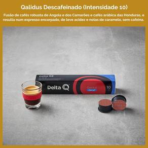 Cápsula Delta você encontra na Cafezale Uma bebida fresca e com aroma inconfundível, para os amantes de um bom café. Sobre a Delta - Café desenvolvido conforme padrão europeu no conforto da sua casa. - As cápsulas Delta preservam sabor e aroma, para que você deguste uma bebida fresca. - Cafés vindos de vários lugares no mundo, em diferentes intensidades. - Produto europeu, sucesso mundial. Conteúdo 10 caixas com 10 cápsulas Delta . Sabor Qalidus Descafeinado Intensidade 10 Delta Qalidus decaf nasce da fusão de cafés robusta de Angola e dos Camarões e cafés arábica das Honduras, e resulta num expresso encorpado, de leve acidez e notas de caramelo, sem cafeina. Com todo o aroma e corpo do seu Qalidus, mas agora em descafeínado. Modelos de cafeteiras compatíveis As cápsulas funcionam em todos os modelos de cafeteira Delta . Atenção: essas cápsulas não funcionam nas cafeteiras Nespresso, Três Corações e Dolce Gusto pois essas marcas usam outros modelos de cápsulas. Observações - Validade: 1 a 2 meses - Fabricado em Portugal