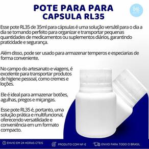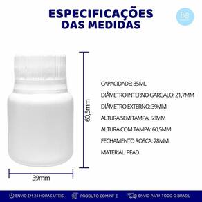 A Embanet Embalagem apresenta o pote para cápsulas/comprimidos de 35ml, feito em Polietileno de Alta Densidade. É perfeito para remédios , pí, comprimidos e armazenamento de matéria-prima. A embalagem branca protege produtos sensíveis à luz. As tampas de 30 mm são reforçadas, e tem lacre inviolável que mostra quando foi aberto. Itens Inclusos: 100 potes de 35ML 100 tampas com lacre Especificações: Altura: 60,5mm Diâmetro: 39mm Capacidade: 35ml Peso: 10g Material: Polietileno de Alta Densidade Na Embanet Embalagem, estamos comprometidos em oferecer produtos de qualidade superior que atendam às suas necessidades e expectativas. Conte conosco para garantir qualidade e satisfação em todas as suas operações de embalagem Marca: Não Informado