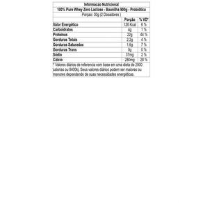 Descrição O 100 pure whey zero lactose contém a wpc sem lactose, uma proteína concentrada do soro do leite com tecnologia que garante a ausência de lactose no produto, podendo ser consumida por pessoas com intolerância a esse carboidrato.