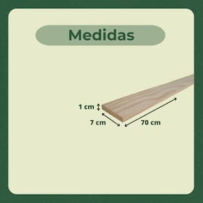 Medidas aproximadas de cada ripa/sarrafo: 1 x 7 X 70 cm (A x L x C)